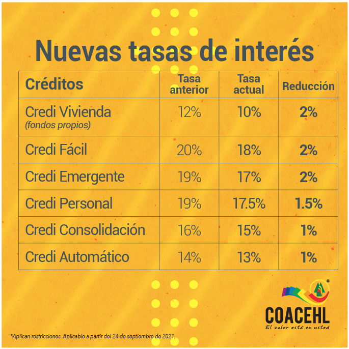Nuevas tasas de interés Bajamos las tasa de interés en los productos de crédito que más te gustan PRODUCTOS DE AHORRO Contamos con una gran variedad de Productos de Ahorro para ti. Ver más.